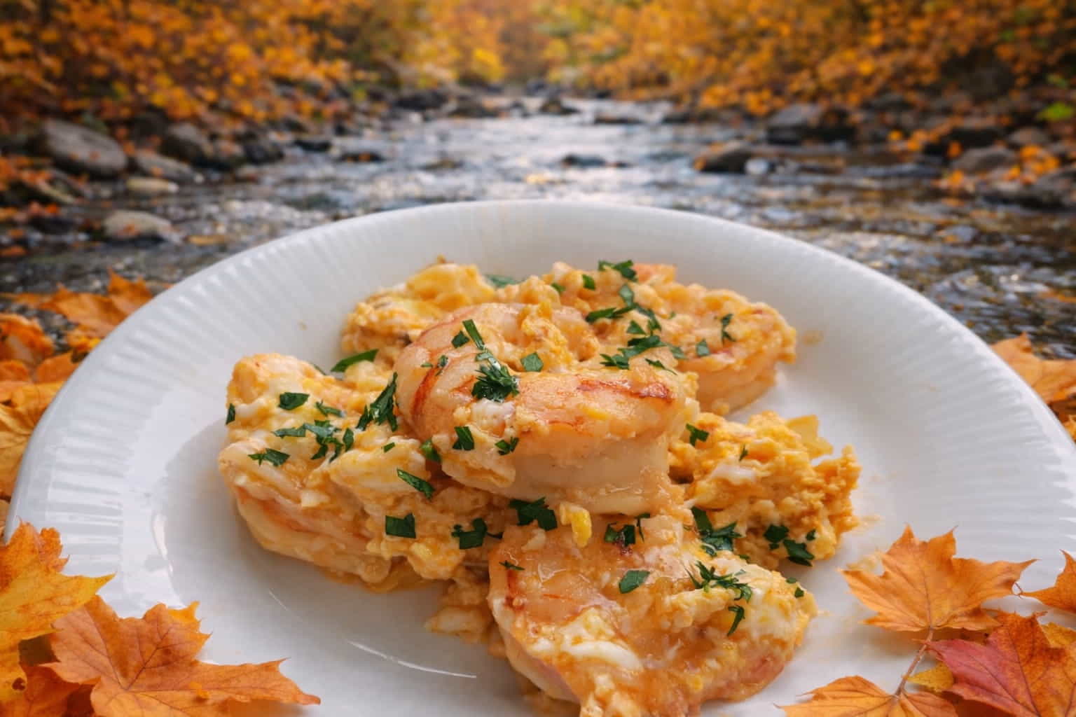 Revuelto meloso con huevos de Gallinas Felices (Huevos Camperos) y langostinos premium