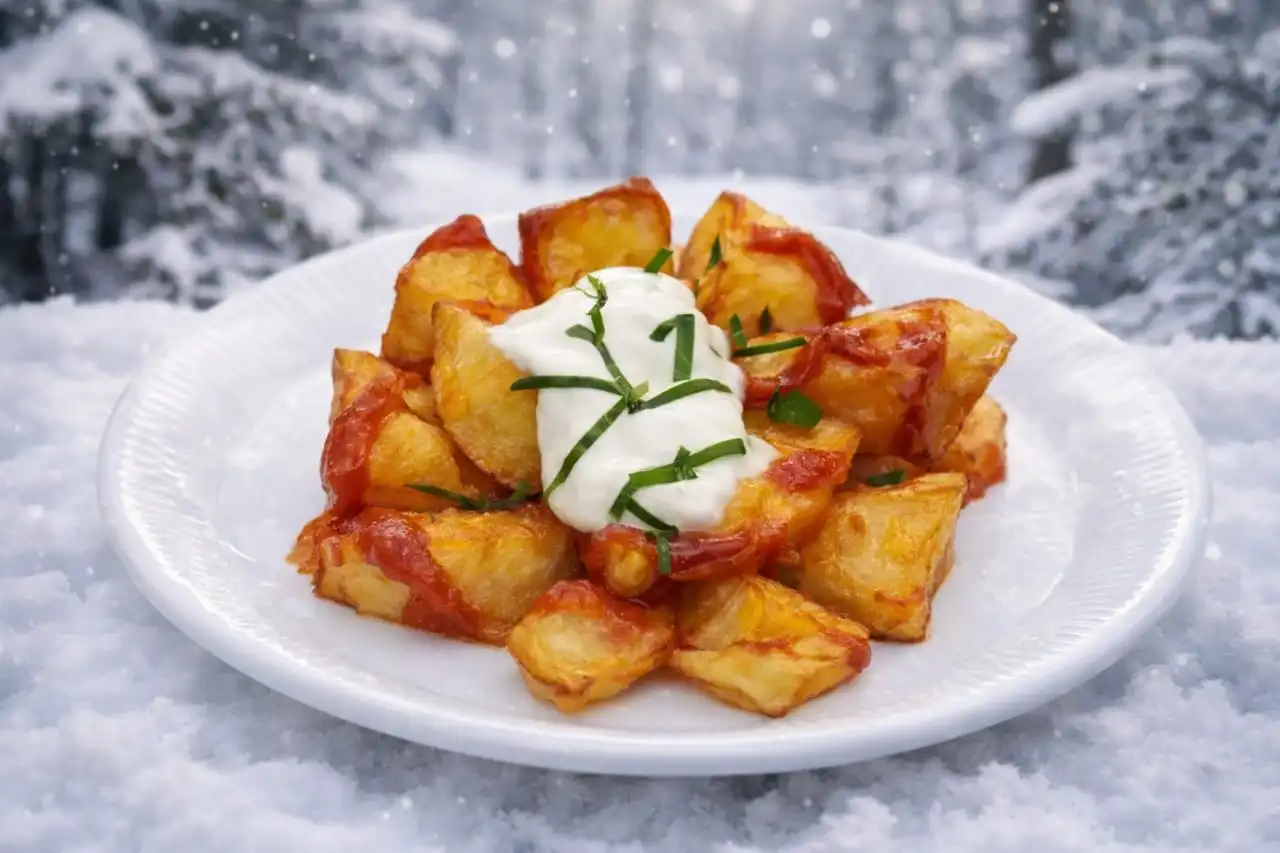Patatas fritas en aceite de oliva con salsa brava casera y alioli (APTO PARA CELIACOS)