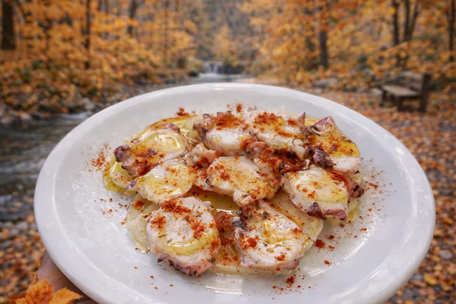 Pulpo español sobre patatas al natural, con aceite de oliva extra virgen, pimentón español y sal maldón. (APTO PARA CELIACOS)
